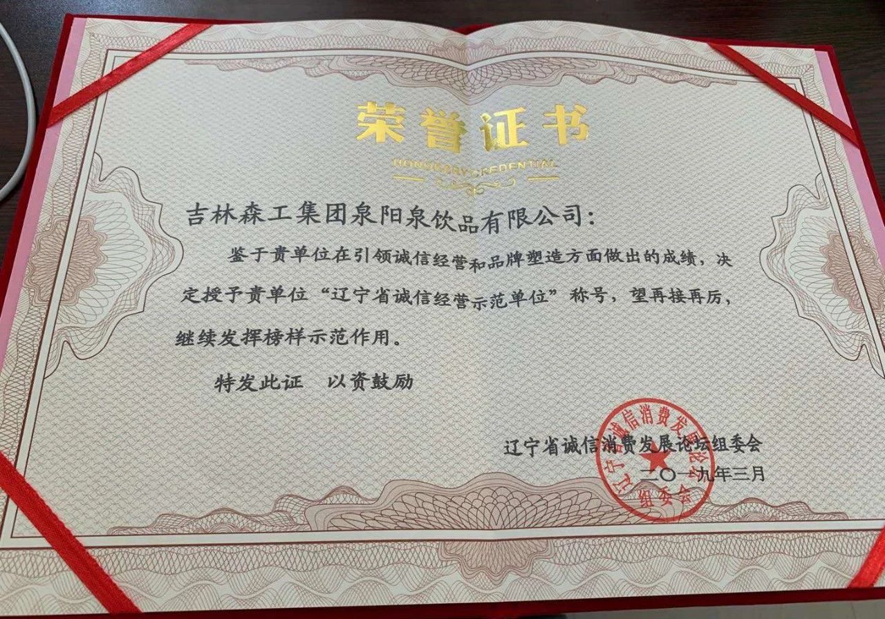 ? ? ? ? ?為了更好地貫徹落實(shí)習(xí)近平總書(shū)記在民營(yíng)企業(yè)家座談會(huì)上的講話精神,以“保質(zhì)保量、誠(chéng)信經(jīng)營(yíng)、綠色消費(fèi)”為主題,樹(shù)立一批“講誠(chéng)信,負(fù)責(zé)任,守法紀(jì)”的先進(jìn)典型。為企業(yè)與企業(yè)之間、企業(yè)與單位之間、企業(yè)與消費(fèi)者之間搭建了一個(gè)很好的交流、合作平臺(tái)。在此次論壇中,吉林森工集團(tuán)泉陽(yáng)泉有限公司榮獲“遼寧省誠(chéng)信經(jīng)營(yíng)示范單位”榮譽(yù)稱號(hào)。
