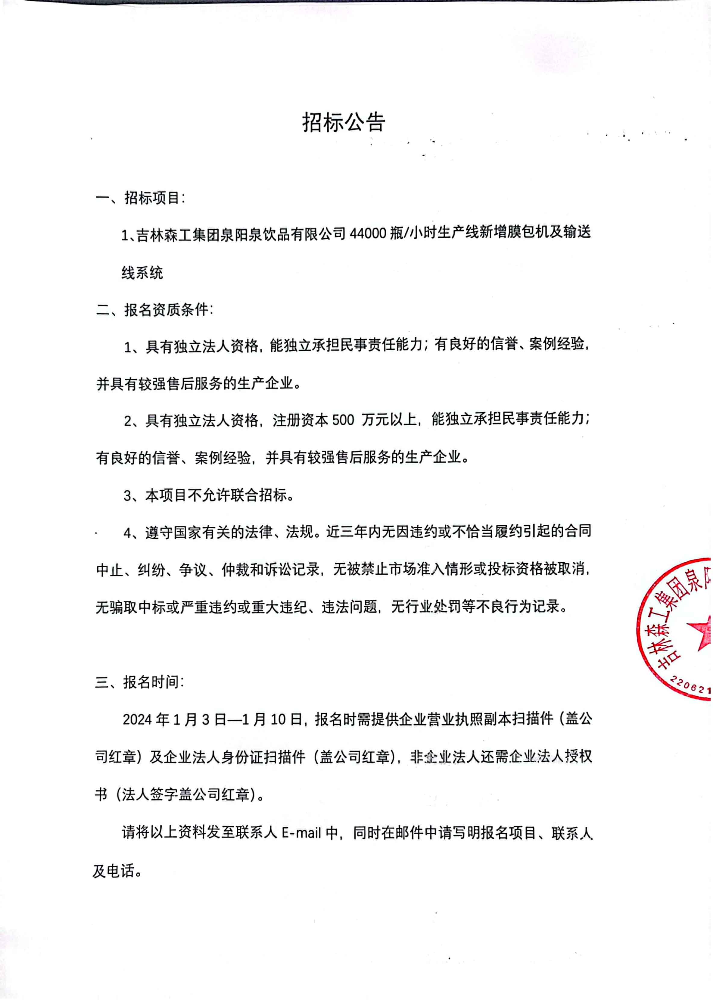 2024年度部分產(chǎn)品干線運輸服務(wù)招標公告